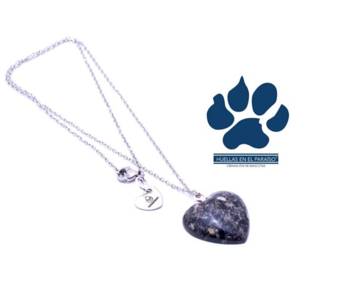 Collar corazón negro hecho con ceniza encapsulada cantidad